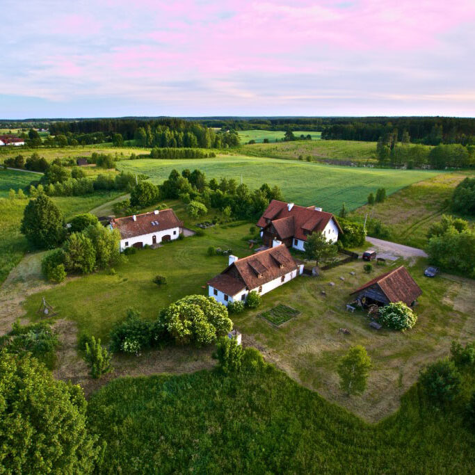 Uroczy folwark, znajdujący się wśród niezabudowanych pól, bez sąsiadów i zgiełku.